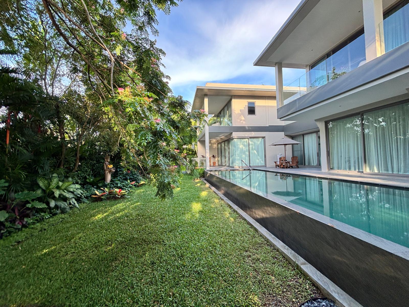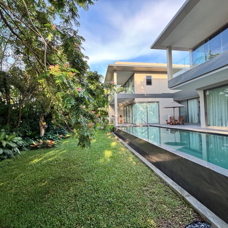 Tucked away within the lush, private hillside enclave of The Pavilions Phuket, Villa Mimosa (Villa 62) is a masterfully renovated residence that redefines luxury living in one of the island’s most exclusive resorts. This remarkable five-bedroom, six-bathroom villa spans an impressive 833 square metres of built area across two elegant levels, and has recently undergone a meticulous two-year renovation completed in 2025, resulting in a sophisticated home that blends timeless architectural charm with modern tropical design. As you step through the villa’s entrance, you are greeted by sweeping open-plan living spaces that flow seamlessly from indoors to out. The main lounge and dining area are bright and voluminous, framed by high ceilings and floor-to-ceiling glass that invite natural light and garden views throughout the day. The bespoke kitchen, equipped with premium appliances and abundant storage, anchors the home’s social space — ideal for entertaining family and friends. Outside, a stunning 14-metre private infinity pool stretches toward the horizon, offering a serene focal point set against lush foliage and distant sea breezes. The generous sun deck is complete with a shaded sala and oversized daybed, creating the perfect setting for lazy afternoons or sunset cocktails. An outdoor rain shower tucked away amidst tropical greenery adds a touch of island indulgence. Each of the villa’s five bedrooms has been thoughtfully designed as a private sanctuary. All come with spacious en-suite bathrooms, high-end finishes, and calming design elements that promote rest and retreat. Whether you’re hosting guests or enjoying the home as a family residence, the layout provides privacy, flexibility, and plenty of room for everyone. Villa Mimosa is not just a private residence — it also benefits from the privileges and amenities of The Pavilions Phuket, a multi-award-winning resort renowned for its tranquil atmosphere and world-class services. Residents have access to a full suite of facilities including gourmet restaurants, a luxury spa, a panoramic rooftop bar, a state-of-the-art gym, and discreet concierge services that cater to every whim. Situated in Layan, on Phuket’s upscale northwest coast, the villa enjoys a prime location just minutes from pristine beaches, golf courses, international schools, and the island’s top lifestyle destinations. The area offers the perfect balance between seclusion and accessibility. Whether you’re looking for an idyllic primary home, a stylish tropical retreat, or a high-performing rental investment, Villa Mimosa stands out as a rare opportunity. Offered at THB 90 million in protected leasehold ownership, this is a turnkey residence that exudes refinement and tropical soul in equal measure. For more information or to schedule a private viewing, please contact ThaiEstate today.