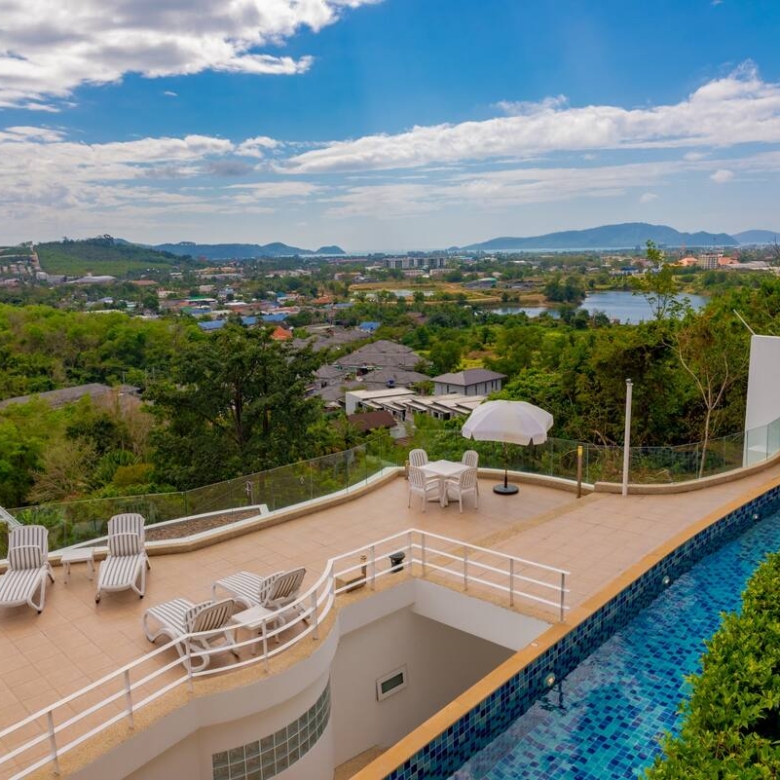 Set high on Chalong Hill, Villa Neptune is a distinguished 6-bedroom, 7-bathroom residence that offers panoramic views over Chalong Bay, the surrounding mountains, and the lush tropical landscape. Combining modern architecturewith natural elegance, this two-storey villa is an ideal sanctuary for families, remote professionals, or investors seeking space, comfort, and privacy. The property is spread across two buildings, thoughtfully connected by expansive terraces and an impressive 17-meter private swimming pool with Jacuzzi. Indoors, the villa features open-plan living and dining areas, two fully equipped Western kitchens, and bright, breezy interiors that flow seamlessly to the outdoor spaces. Large windows throughout the home frame stunning sunrise views and bring in abundant natural light. Villa Neptune is fully furnished and includes lifestyle features such as a private gym, sauna, home office, and a covered car park. With its spacious layout, high-end finishes, and complete amenities, it’s perfectly suited for both full-time living and holiday escapes. Property Features: Price: THB 39,000,000 Land Area: 1,000 sqm Built-Up Area: 530 sqm Ownership: Freehold (Thai Company) Location: Chalong Hill, Phuket Villa Highlights: 6 bedrooms with sea, mountain, garden, and city views 7 bathrooms, including ensuite setups and guest bathrooms Private 17-meter swimming pool with Jacuzzi Spacious terraces for entertaining and relaxation Two Western-style kitchens and open-plan living areas Private gym and sauna for wellness at home Home office and covered parking Landscaped garden in a tranquil hillside setting CCTV and alarm system Comes fully furnished and ready to move in Location Highlights:Villa Neptune is ideally located just 5 km from Chalong Pier, offering easy access to boating and island-hopping. Within 15–20 minutes, you can reach Phuket’s most beautiful beaches, including Kata, Karon, Rawai, and Nai Harn. The villa is also within 15 minutes of international schools, shopping centers like Lotus’s and Makro, and a variety of local restaurants, gyms, and wellness centers, making it ideal for both everyday convenience and peaceful living. Contact us today to schedule a private viewing or request more information.