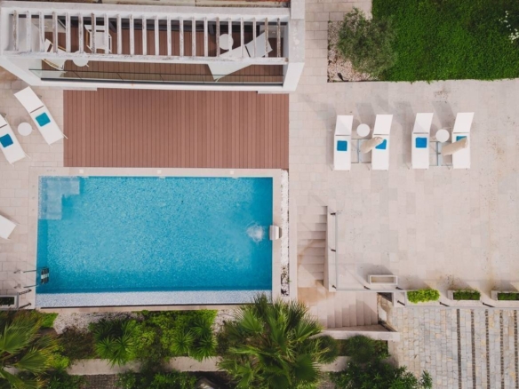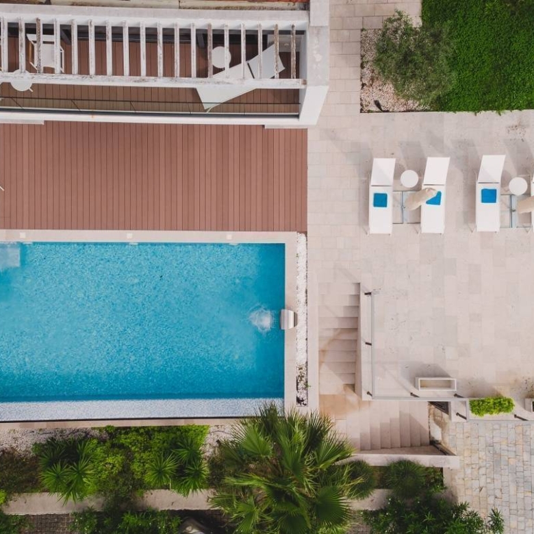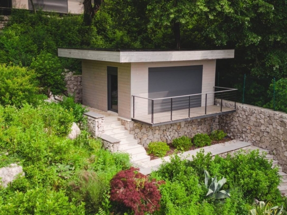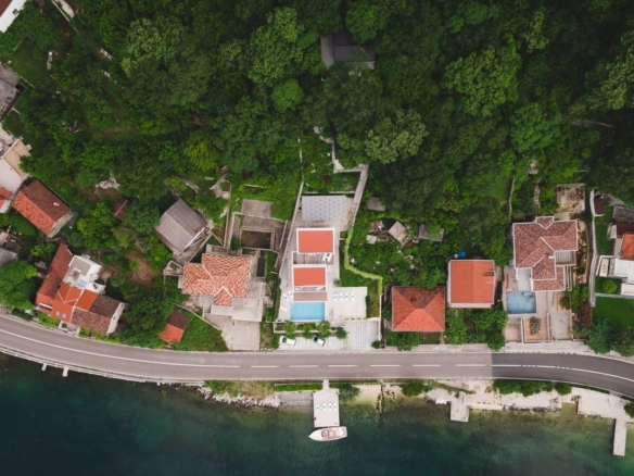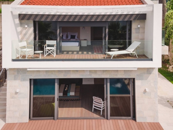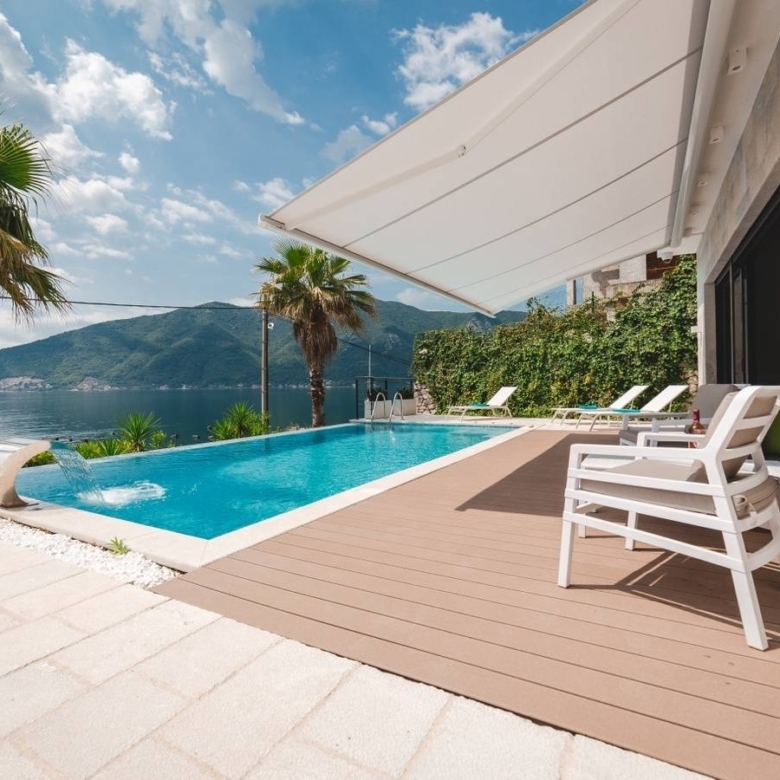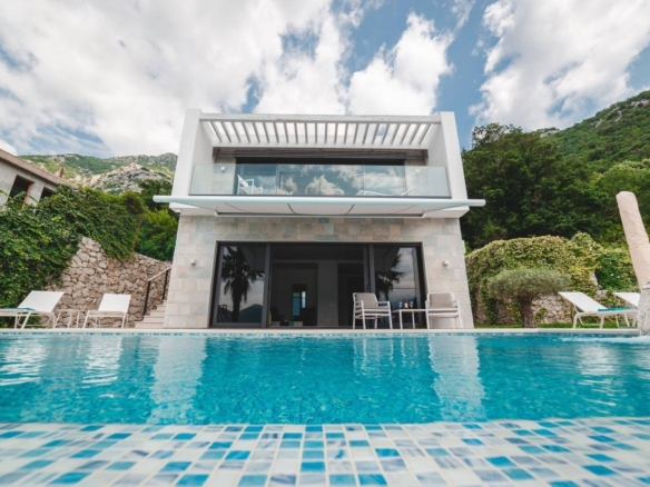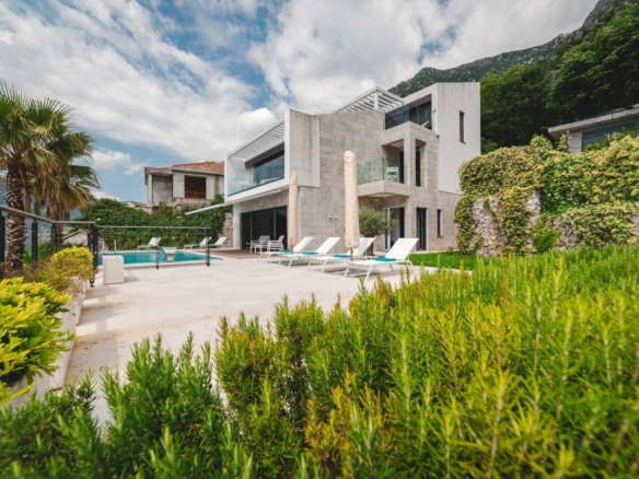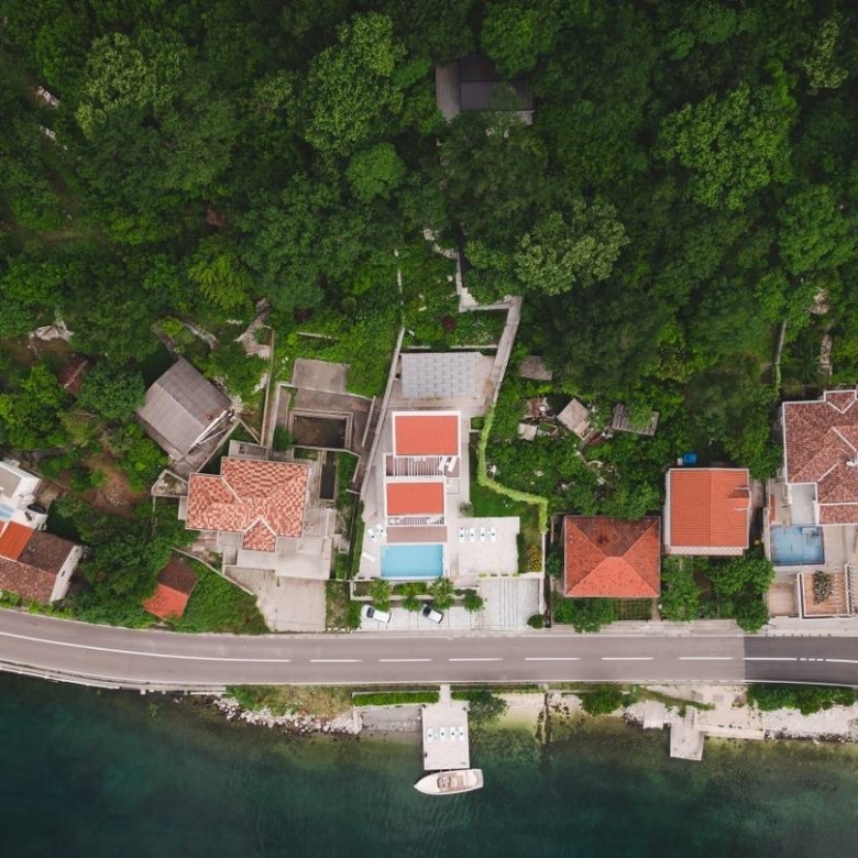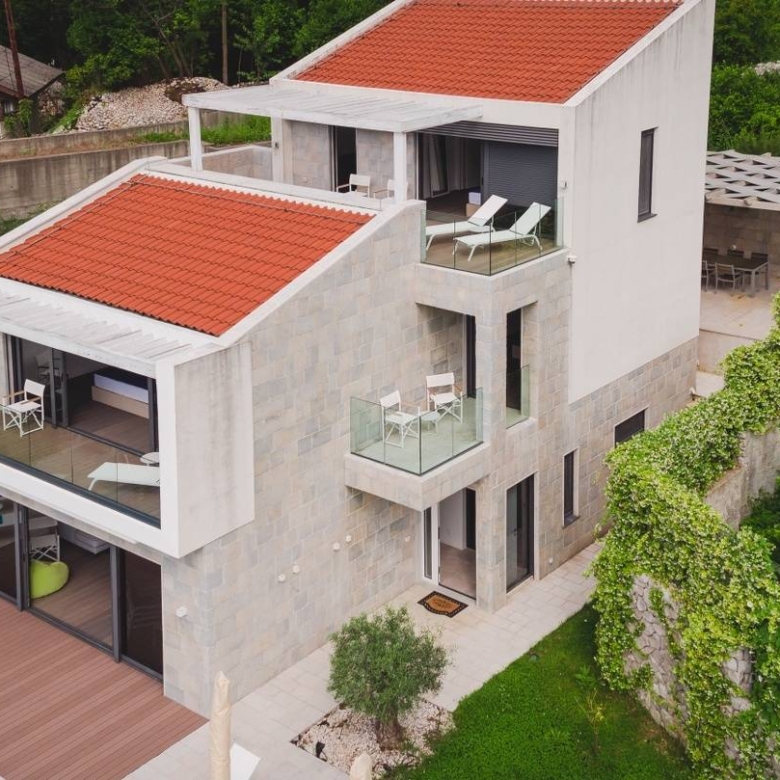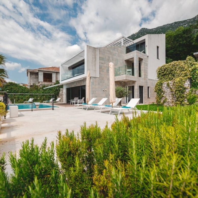 This newly built villa is situated in Kotor Bay, in the picturesque place Strp-an authentic village, with traditional old stone houses. Villa is located on the front line, with its beach and mooring for yachts up to 35m.The villa consists of three levels.The ground floor consists of an entrance hall, spacious living room, dining room, kitchen, hall, toilet, pantry, and stairway. The living room leads to the terrace with a swimming pool.Upstairs are two apartments with bathrooms. Both apartments have terraces overlooking the sea.In the attic is situated the third apartment with a bathroom, with access to an open roof terrace.Villa has a private swimming pool, landscaped gardens and terraces, and two outbuildings in the laurel forest in the villa hinterland. The first outbuilding is a place for recreation and a spa. It consists of a gym and sauna with a bathroom.The villa has easy access to the main road with 4 outdoor and two indoor parking spaces. Within it, there is a technical room and an apartment for staff accommodation.Nearby is one of the most famous restaurants in Montenegro. Villa is situated on the first line to the sea, 15km from the Porto Montenegro Marina and 18km from Tivat airport.