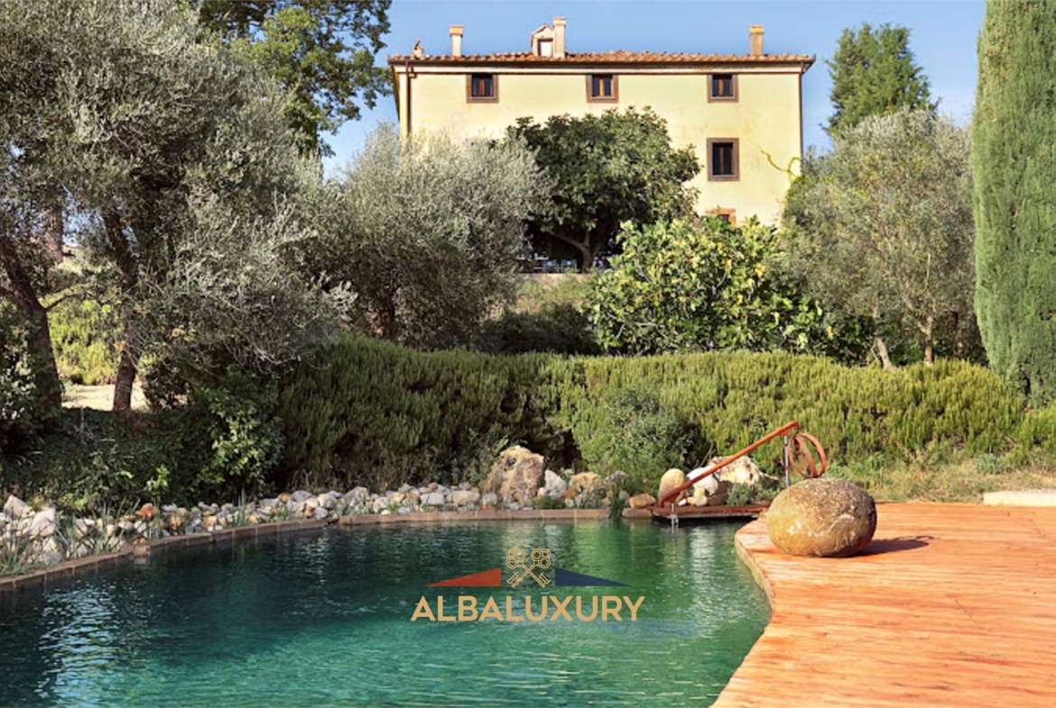 In Montepulciano, nestled in the lush Tuscan countryside and the characteristic Crete Senesi, a wonderful luxury villa with a pool is available for sale.^^This place is famous not only for its scenic beauty, but also for the production of high-quality wines.^^The property boasts numerous courtyards and outdoor spaces, perfect for fully enjoying outdoor life, among secret gardens, vegetable gardens, and cozy courtyards. Surrounded by 5 hectares of land dedicated to various crops, it includes 2 hectares of organic arable land, 200 productive olive trees, and 100 fruit trees.^^An enchanting private garden surrounds the residence and hosts a beautiful natural pool, ideal for enjoying a relaxing atmosphere and cooling off on hot summer days.^^The property includes the main villa and a second building entirely dedicated to the restaurant, which features a spacious and bright dining room, a veranda overlooking the hills, and a professional kitchen.^^The main villa is spread over two floors and includes a large living room with a fireplace, a well-equipped kitchen, and a quiet sleeping area with ten bedrooms and bathrooms.^^With a total internal area of 400 square meters, both buildings have been elegantly renovated, featuring wooden floors, large windows, and a distinctive design style.^^Located on a hill in Montepulciano, this stunning property is the ideal choice for those who want to enjoy the serenity of the surrounding nature without sacrificing the services and conveniences of the city.,