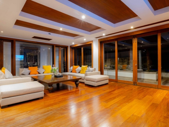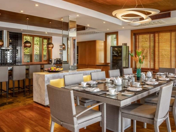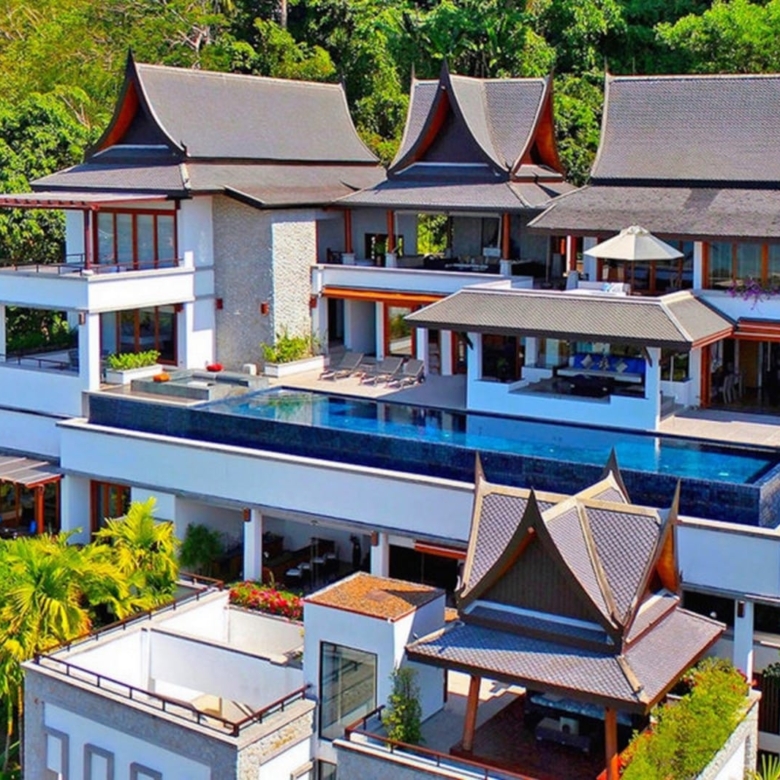 Perched majestically on a private hillside along Phuket’s esteemed west coast, Villa Yang Som epitomizes luxury living with its seamless blend of traditional Thai architecture and modern amenities. This six-level villa offers unparalleled vistas of the Andaman Sea, Surin Beach, and Bang Tao Bay, ensuring breathtaking views from every room. Architectural Elegance and Design Villa Yang Som showcases authentic Thai-style pavilions adorned with elegant, traditional roofs. The villa’s design harmoniously balances enclosed and open spaces, allowing abundant natural light to illuminate its expansive interiors. Each room is thoughtfully crafted with generous floor space, large windows, and doors that frame the stunning seascape, creating a serene and inviting atmosphere. Luxurious Living Spaces Infinity Pool and Outdoor Areas: The villa features an 18-meter-long infinity pool that seamlessly merges with the horizon, offering unobstructed sea views. Surrounding terraces and traditional Thai salas are strategically positioned to capture refreshing ocean breezes, providing idyllic spots for relaxation and alfresco dining. Entertainment and Leisure: Designed for both relaxation and entertainment, Villa Yang Som includes an entertainment area equipped with a bar, pool table, and ping pong table. A dedicated cinema room, which can also serve as a children’s bedroom, offers a private space for movie nights and leisure activities. Gourmet Dining: The villa boasts a fully equipped American-style kitchen adjacent to indoor and outdoor dining areas. A traditional Thai sala provides an enchanting setting for outdoor meals, allowing residents to dine while overlooking the mesmerizing seascape. Sumptuous Accommodations The residence comprises five spacious bedrooms, each with its own private balcony or open deck offering panoramic ocean views. The master suite and additional bedrooms are designed with attached studies or living rooms, ensuring privacy and comfort for all occupants. Prime Location Situated within a secure, gated community with 24-hour estate security, Villa Yang Som is conveniently located: Surin Beach: A mere 10-minute walk away, residents can enjoy pristine sands and vibrant beach clubs. Phuket International Airport: Approximately a 20-minute drive, facilitating easy travel connections. Local Amenities: Proximity to high-end restaurants, shopping centers, and golf courses ensures a lifestyle of convenience and leisure. Additional Features Wellness Amenities: Equipped with massage tables for in-villa spa treatments, allowing residents to indulge in personalized wellness experiences. Modern Conveniences: The villa includes an elevator for easy access across all levels, covered parking for two cars, and high-speed wireless internet throughout the property. Security and Privacy: Located within a gated community, the villa offers 24-hour estate security, ensuring peace of mind for its residents. Villa Yang Som is more than just a residence; it’s a sanctuary that offers an exquisite blend of luxury, comfort, and Thai cultural charm. This property presents a unique opportunity to own a piece of paradise in one of Phuket’s most sought-after locations. This exclusive villa is available for US$5.2 million. Thai baht price an approximation of this figure. Please check the exchange rate to get the accurate THB price.