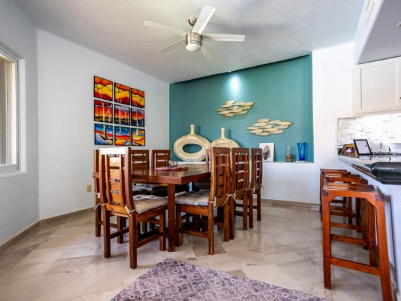 Welcome to the pinnacle of beachfront living at Villas del Mar in Puerto Aventuras. This stunning two-story penthouse offers a rare combination of modern sophistication and relaxed elegance in one of the Riviera Maya’s most sought-after communities. Nestled on the second floor of a meticulously maintained building, this residence is designed for those who seek a perfect balance of luxury, privacy, and a vibrant coastal lifestyle.