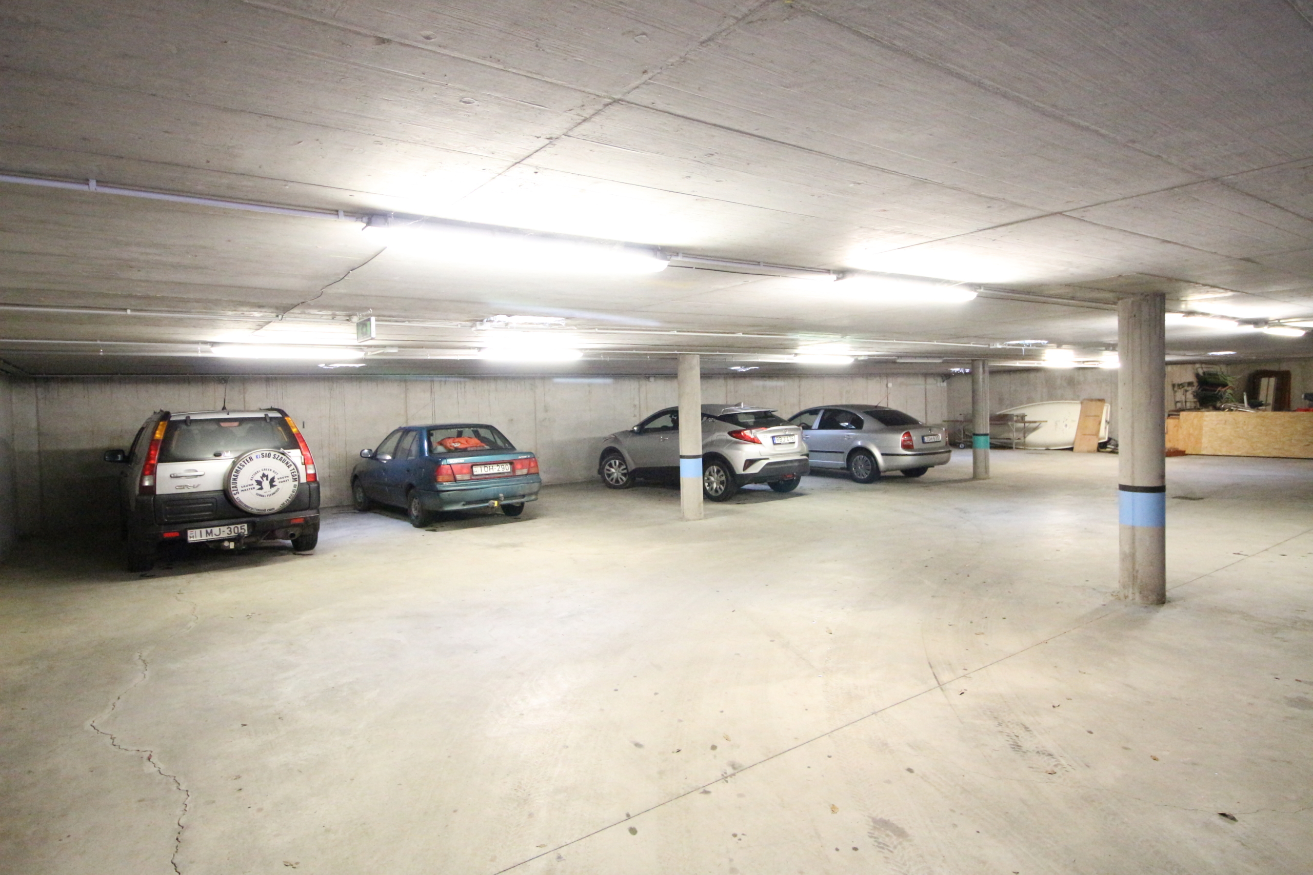 Innengarage sind für 16–18 Autos und Tiefgarage für 18–20 Autos vorhanden.