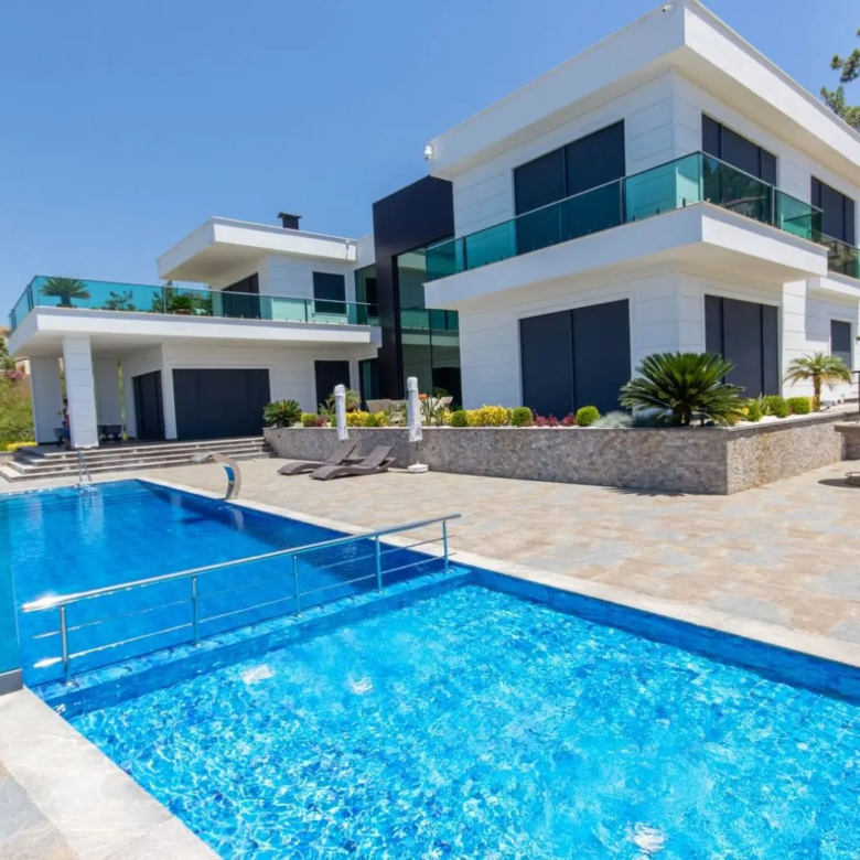 Experience the epitome of luxury living in this stunning 5+1 villa, located just 4 km from the sea and 3.5 km from the city center. Set on a generous 1202 m² plot, this exquisite property spans 680 m², offering ample space and unmatched elegance.- Spacious Living: 5 bedrooms, 5 bathrooms + WC, and 2 kitchens- Entertainment Ready: Large swimming pool, jacuzzi, and 5 TVs- Modern Conveniences:VRF air conditioning system, Bose speaker system (inside and outside), and electric Panjur system- Comfort Features: Underfloor heating system, pool heating system, and complete furnishing- Safety and Security: 5 surveillance cameras, security alarm, and thermal insulation- Additional Amenities: Wireless internet, electric generator, and a 2-car enclosed garageWhat truly sets this property apart is its blend of luxurious features and cutting-edge technology, ensuring a lifestyle of comfort and convenience. Whether you’re lounging by the heated pool, enjoying the immersive sound of the Bose speakers, or feeling secure with the advanced security system, this villa offers a unique living experience that rivals any other.Don’t miss the opportunity to own this magnificent villa. Act now and immerse yourself in a world of luxury and sophistication. The blend of modern technology and proximity to the sea makes this property a must-have. Contact us today to learn more and secure your dream villa!