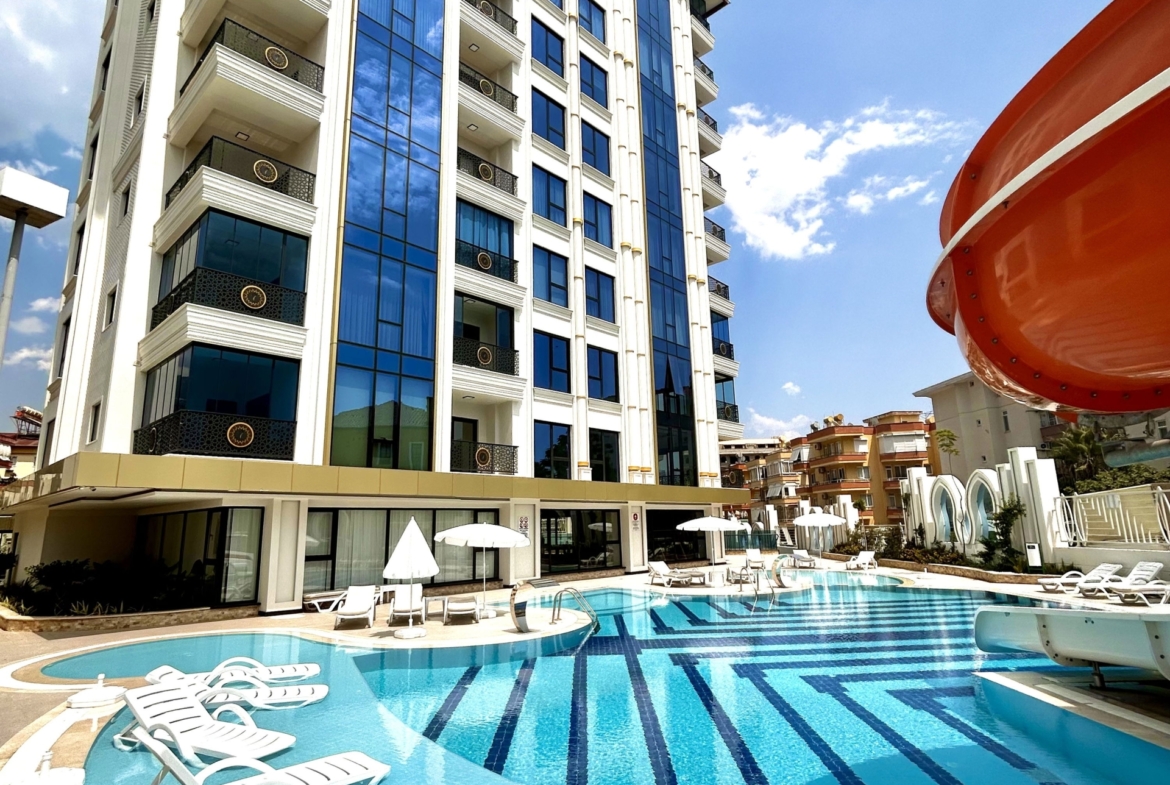 Welcome to your dream coastal home in Alanya! Nestled just 800 meters from the sparkling Mediterranean Sea and a mere 200 meters from the vibrant city center, this stunning 1+1 apartment offers a blend of modern luxury and unbeatable convenience.Highlights of this exceptional property include:- 53 sqm living space for ultimate comfort- 1 spacious bedroom and 1 stylish bathroom- A private balcony to soak in serene views- Completion date: May 2023This property boasts an array of exclusive amenities designed to enhance your lifestyle:- Outdoor swimming pool and kiddie pool- Aqua park for endless fun- Sunbathing areas and camellia for relaxation- BBQ area to entertain family and friends- Sauna, salt room, steam room, and Turkish bath for ultimate wellness- Fully equipped gym and shock pool- Massage rooms to unwind after a long day- Elegant lobby and generator ensuring comfort and reliability- Indoor and outdoor parking for your convenienceWhy settle for anything less when you can have it all? This apartment offers a perfect balance of tranquility and accessibility, setting it apart from other properties. Imagine starting your day with a refreshing dip in the pool, followed by a relaxing session in the sauna, and ending your day with a leisurely stroll along the beach.Don’t miss this incredible opportunity to own a piece of paradise. Contact us today to learn more about this exceptional property and make it yours. Experience the coastal elegance and unparalleled convenience that this apartment has to offer. Act now and elevate your lifestyle to new heights!